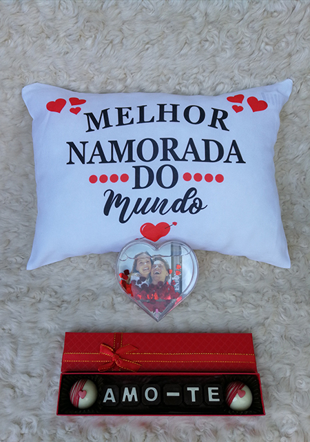 Almofada+ coração acrílico + caixa de bombons (Amo-te )